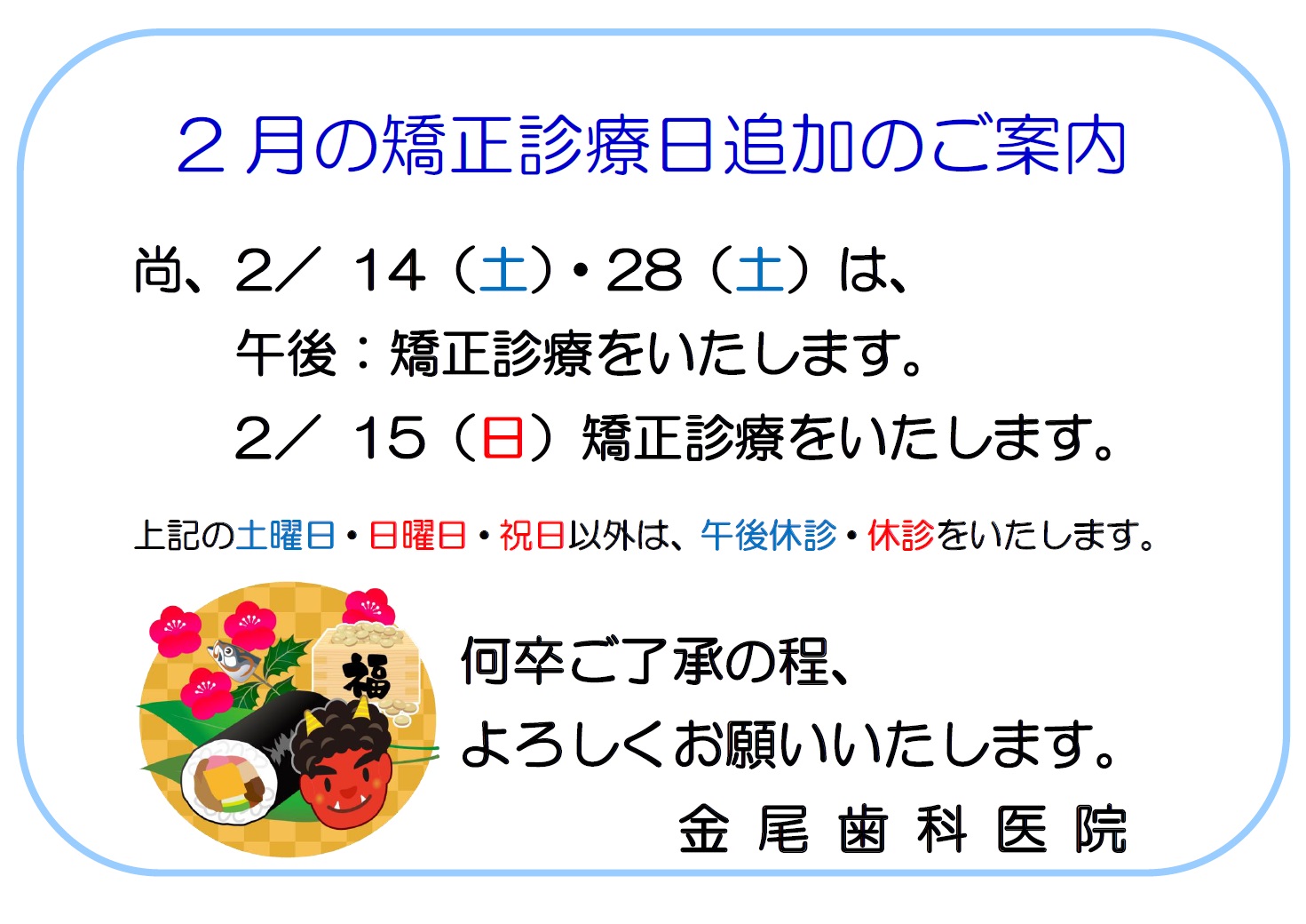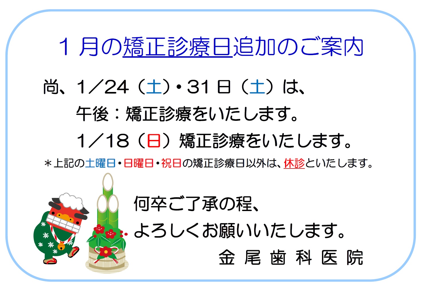 ★…土曜午後、日曜は矯正診療日となります